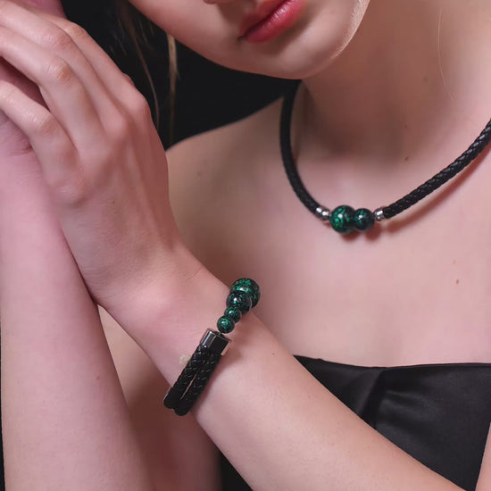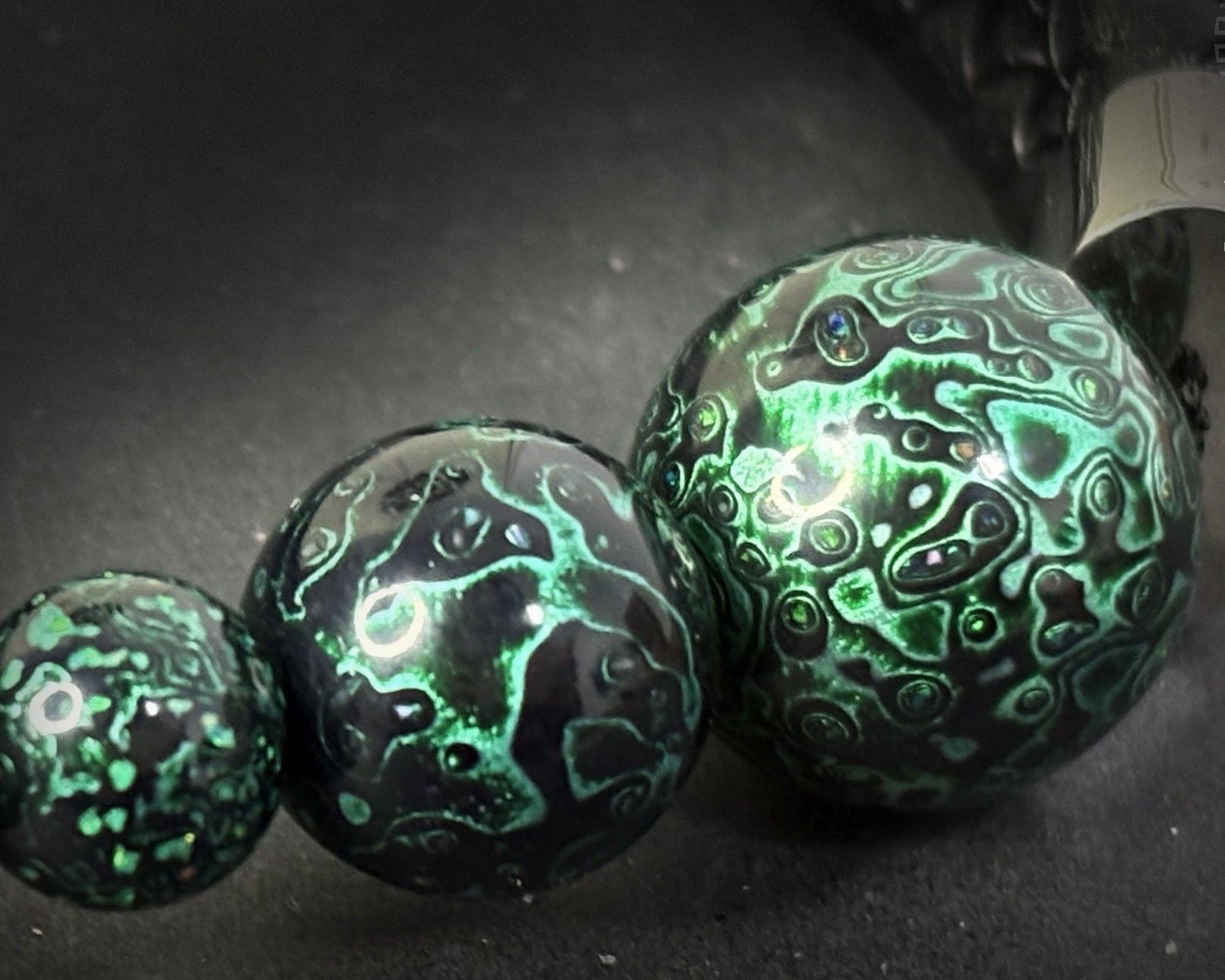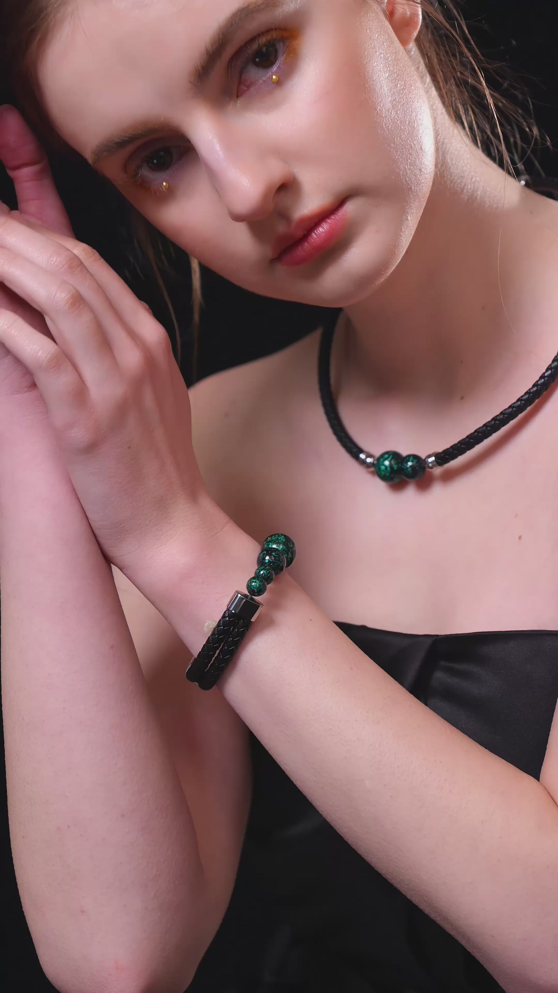 Luminous green lacquer beads reflect the mystique of the northern lights—reminding you to follow your intuition and seek your true path. A bracelet of strength, transformation, and light.