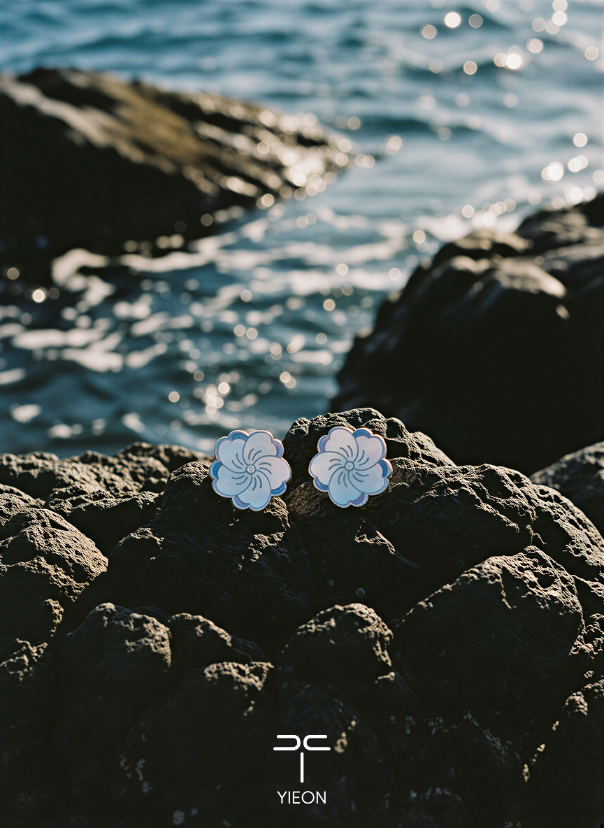 This round CAMELIA stud distills the essence of the flower—mother-of-pearl petals radiate softly from a serene center, reflecting quiet purity and inner calm.