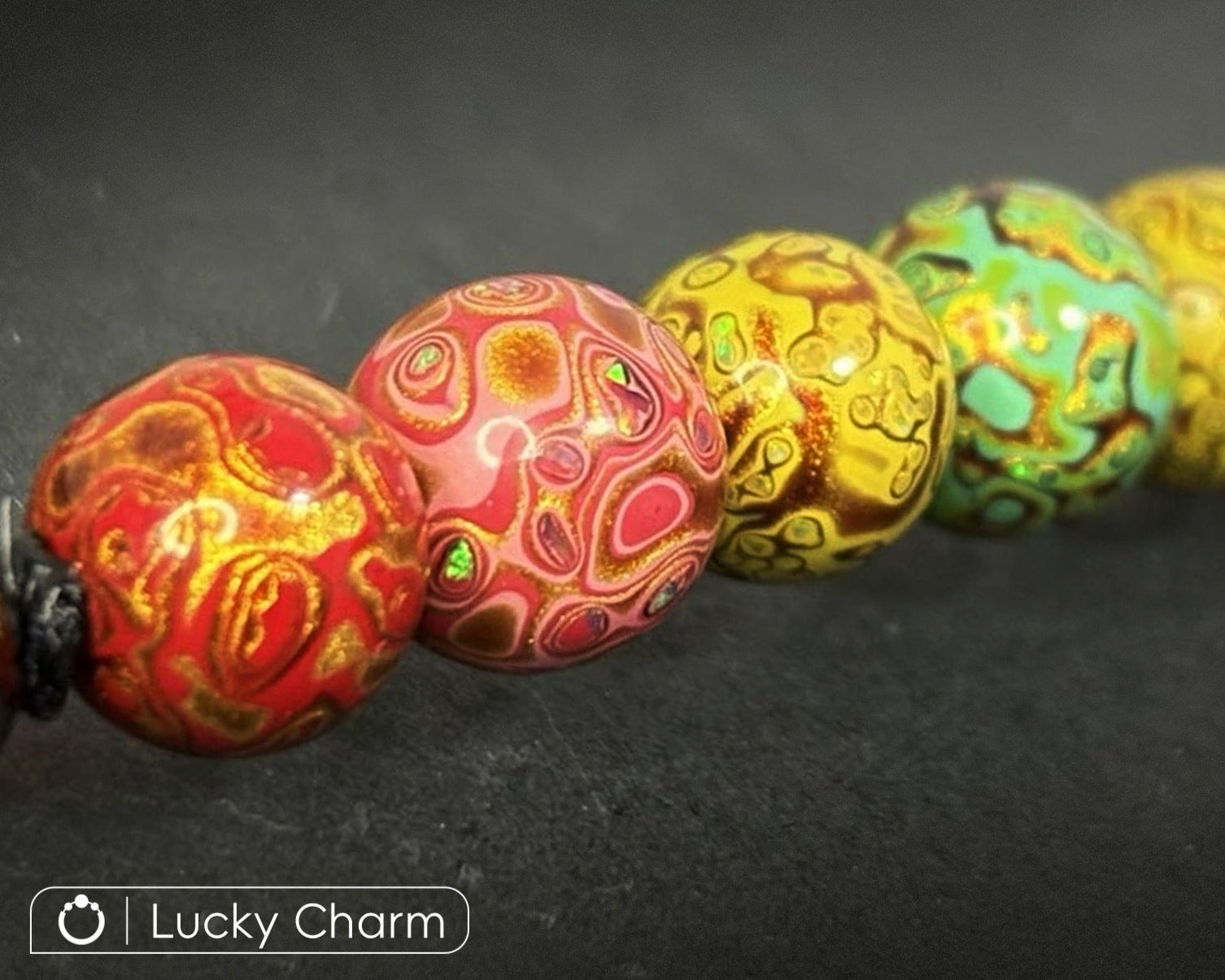 Embrace Carnival's vibrant spirit in our collection, capturing freedom and joy. Let festive hues lead to a journey of creativity and celebrating life's exuberance! Finished with natural Lacquer and adorned with opal and gold layer to add vibrance to the color of beads.