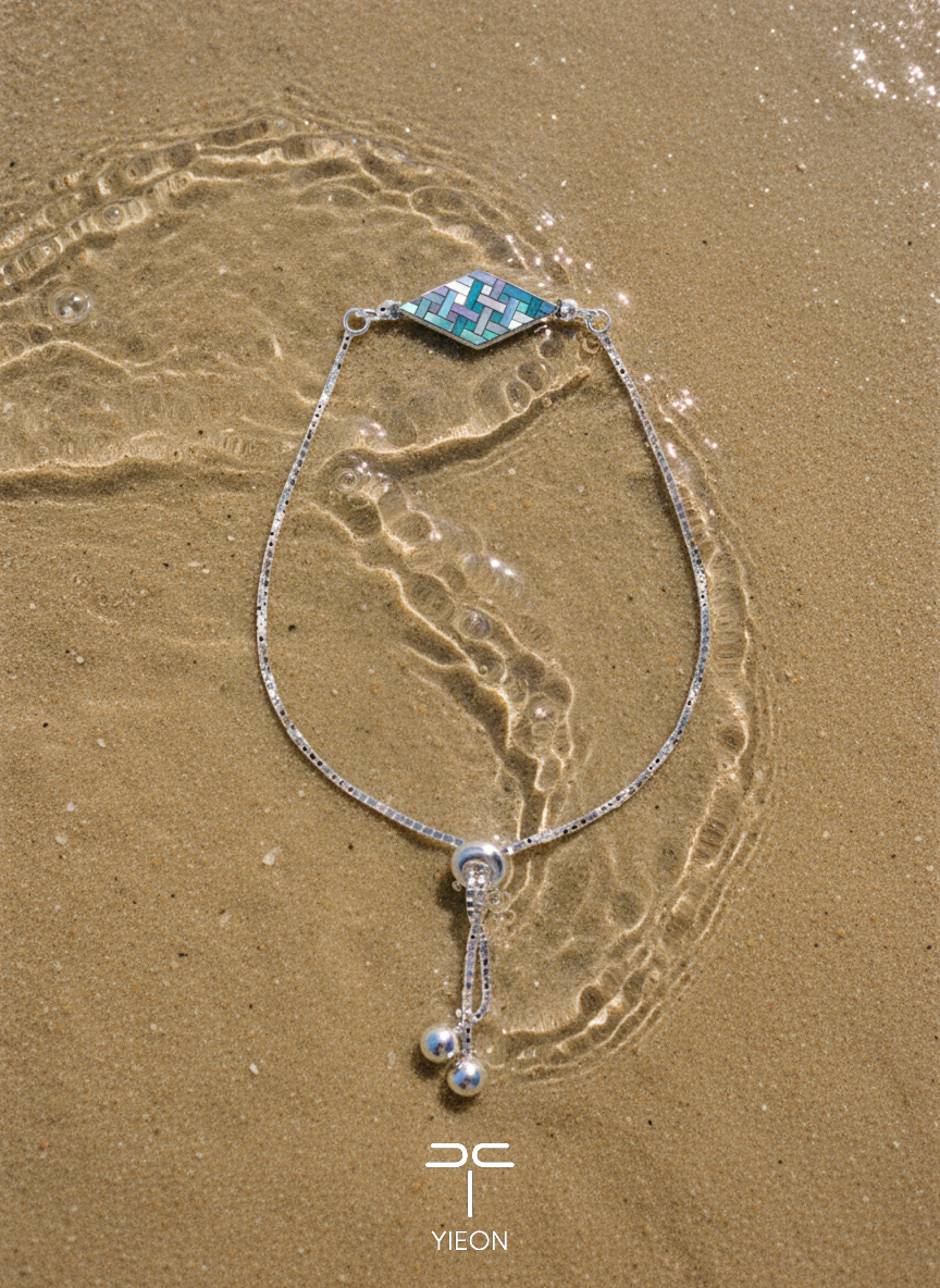 Mother-of-pearl (shell), lacquer, purple sandalwood, gold-plated 925 silver chain