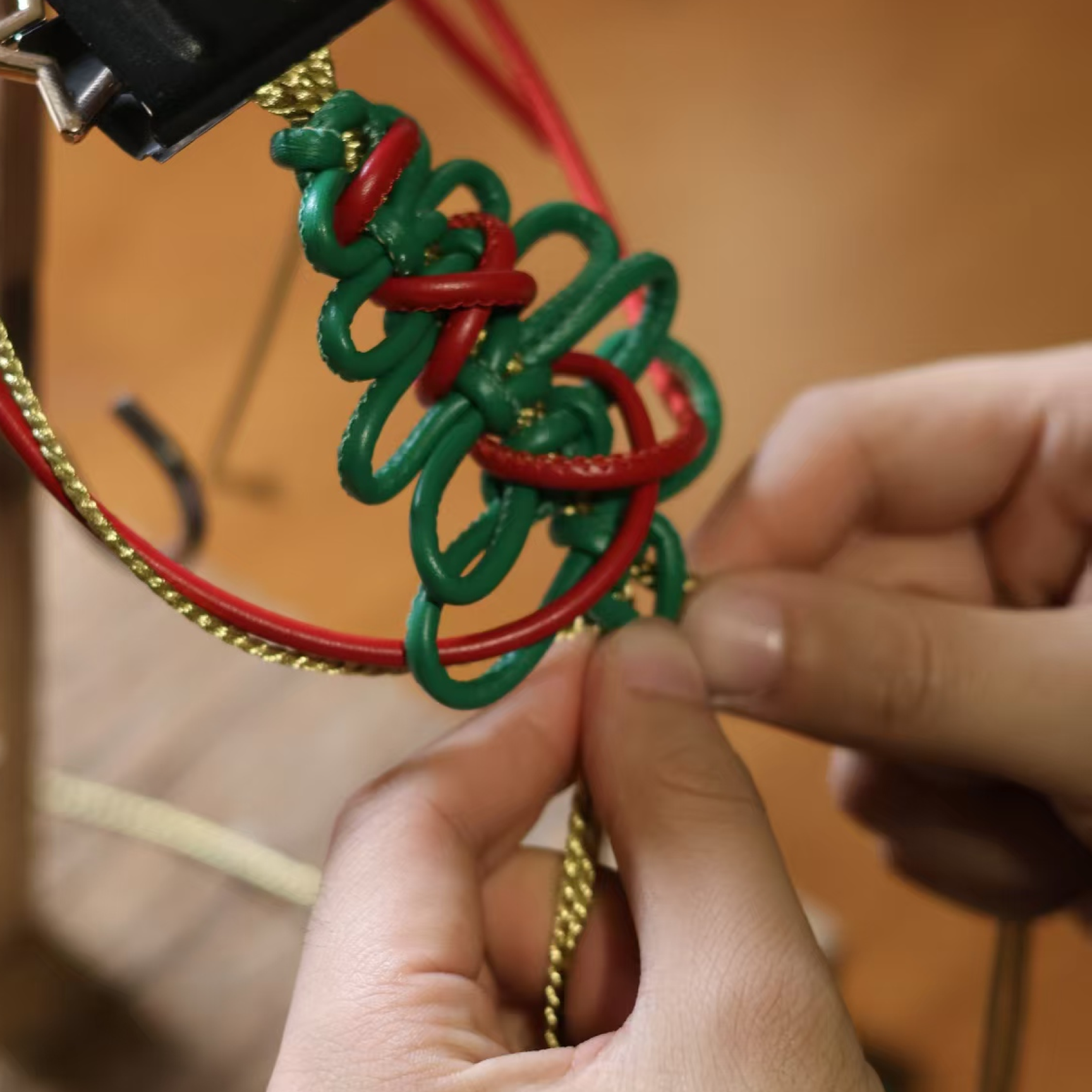 From the first knot to the final trim, no step is mechanized. Each cord is woven, pulled, and arranged manually. The signature symmetry and fullness of a classic Chinese knot are achieved only through repeated cycles of tightening and careful shaping, often requiring scores of precise adjustments by the artisan’s hand.