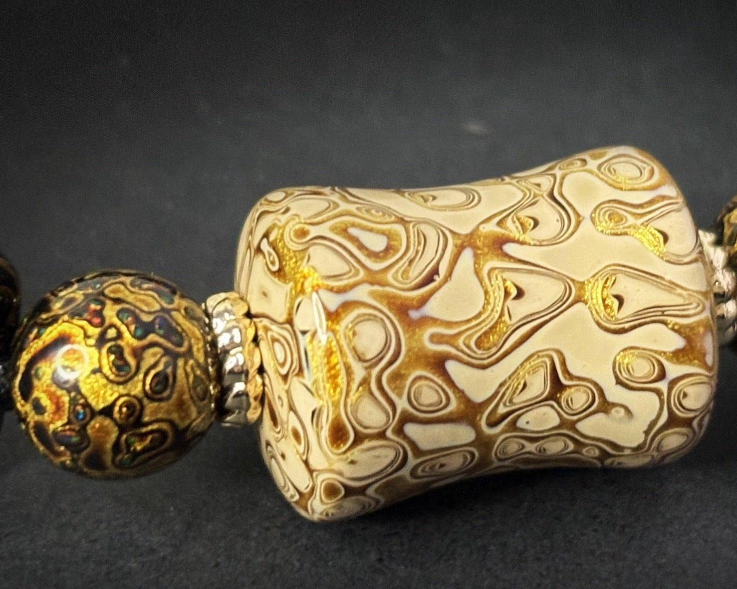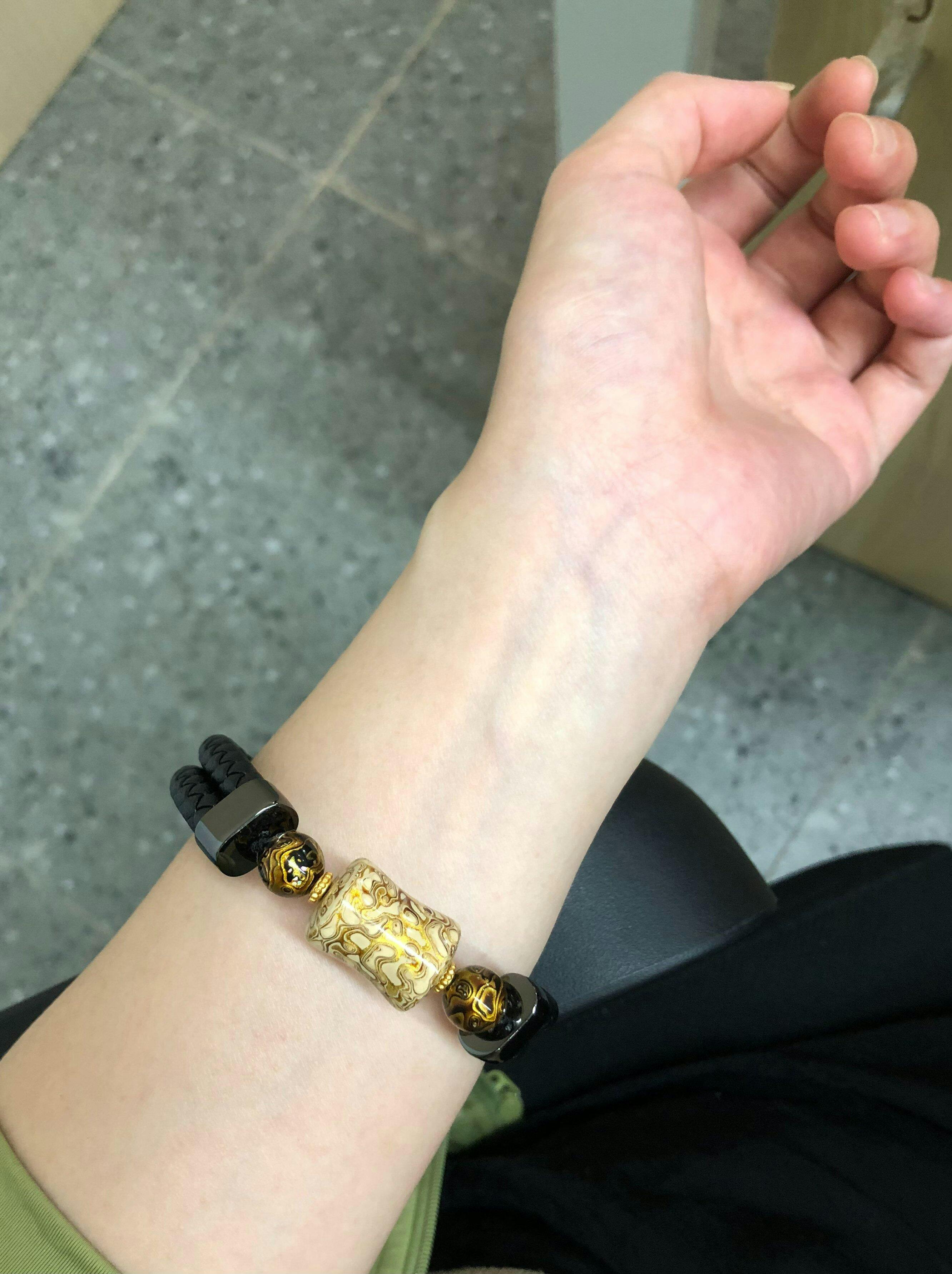 Gold-toned lacquer beads inspired by bamboo and abundance—this bracelet is a refined symbol of prosperity, crafted to attract luck with timeless elegance. Adored with opal and gold layer, finished with natural lacquer.