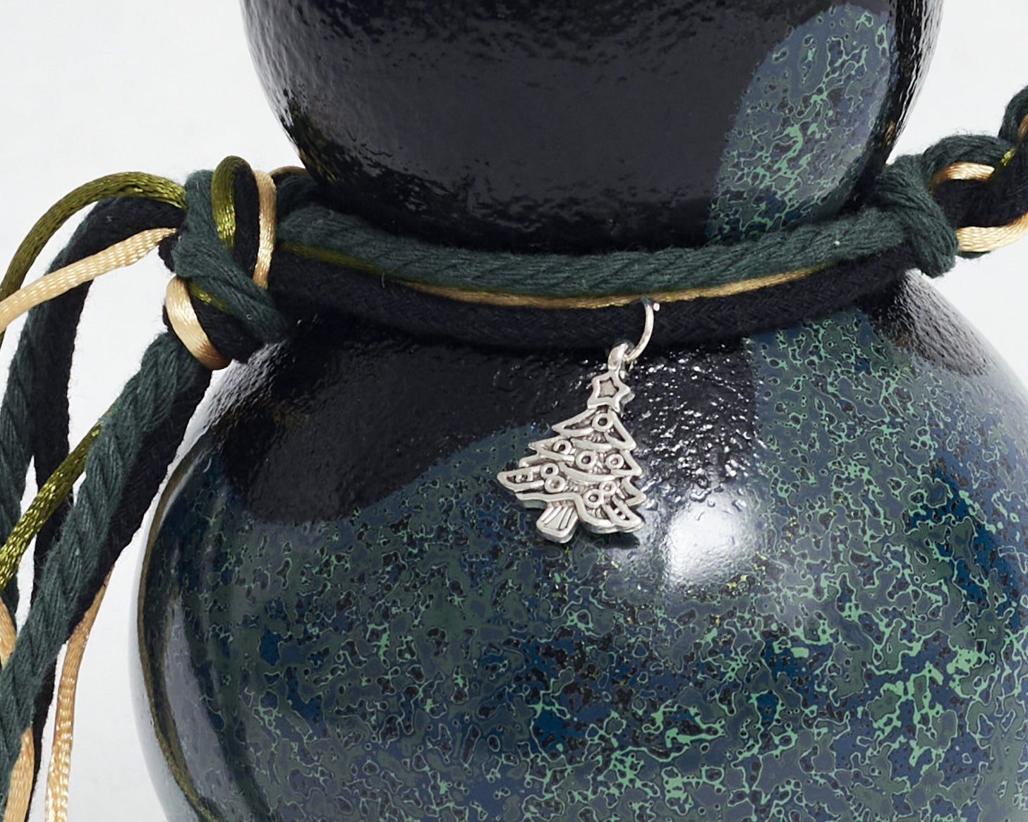 This Fulu Bottle features a striking blend of blue and black hues, meticulously hand-painted to evoke tranquility and depth and adored with a pine tree charm. Finished with over 60 layers of natural lacquer, it offers a flawless, durable surface that celebrates traditional craftsmanship fused with contemporary elegance. A perfect gift or statement piece for those who appreciate artistry in every detail.